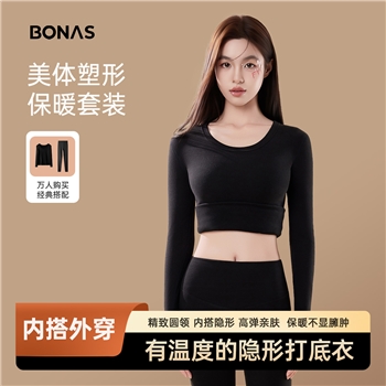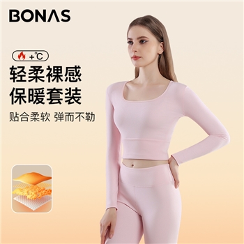 宝娜斯秋衣秋裤套装山茶油养肤修身上衣打底衫加绒女士保暖内衣
